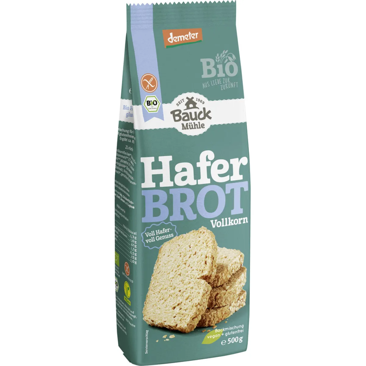 | Verkehrsbezeichnung: | Backmischung für Vollkorn-Haferbrot mit glutenfreien Haferflocken |