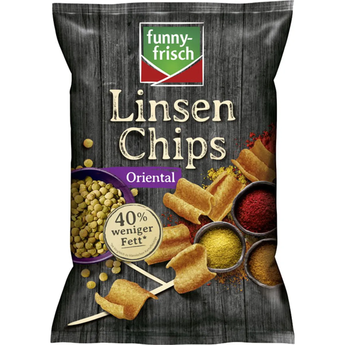 Die Chips aus Linsenmehl mit einer orientalisch-pikanten Würze sind extra knusprig. Außerdem kannst Du sie ohne schlechtes Gewissen genießen, denn die Linsenchips haben gegenüber herkömmlichen Kartoffelchips 40 % weniger Fett.