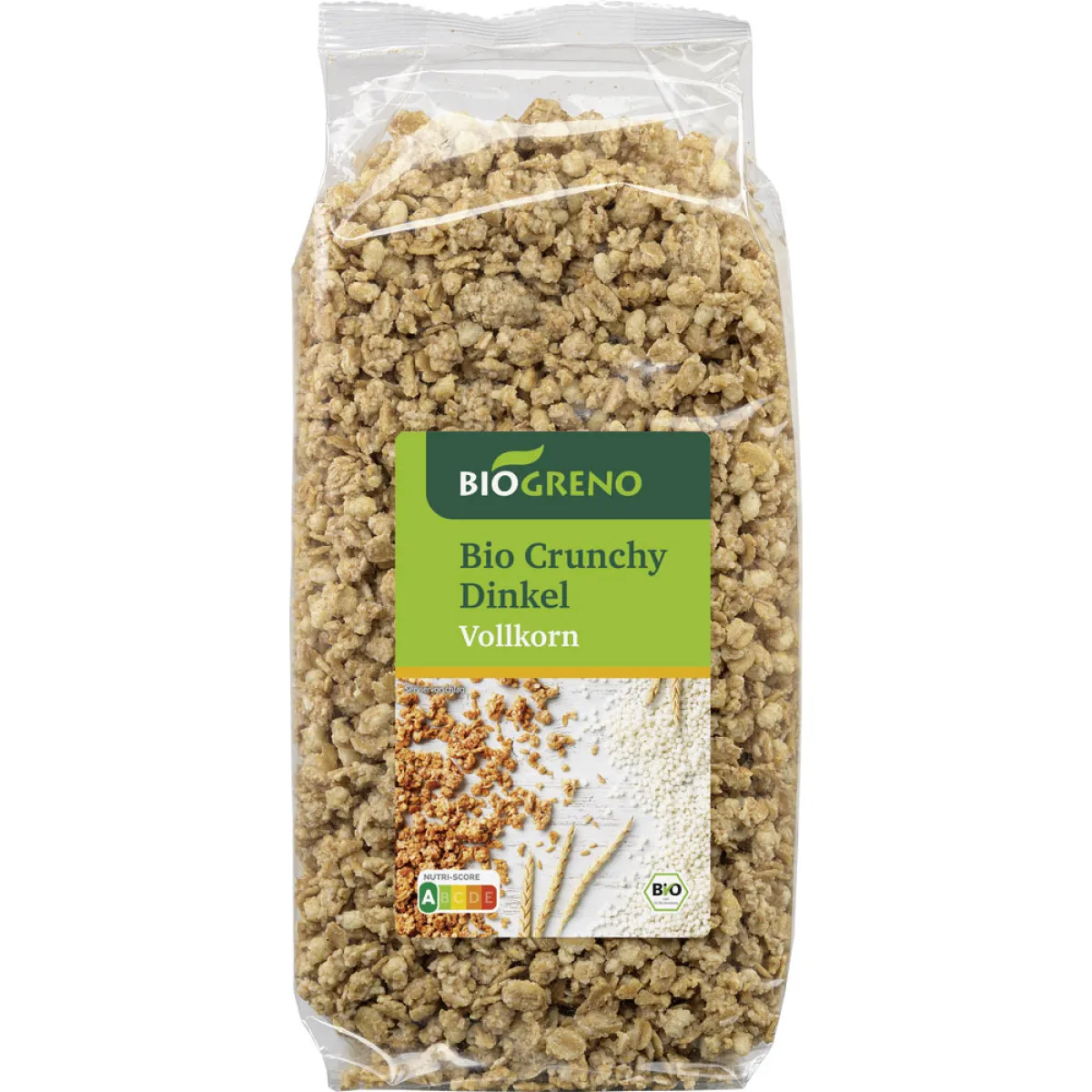 Mit dem Biogreno Crunchy Dinkel startest du knusprig in den Tag. Das vollwertige Dinkelcrunchy überzeugt durch seinen mild-nussigen Geschmack und eine angenehme Süße, die perfekt mit verschiedenen Frühstücksideen harmoniert. Ob du es mit einem Pflanzendrink, einer Joghurtalternative oder frischem Obst kombinierst – das Crunchy sorgt immer für einen besonderen Biss und macht dein Frühstück zu einem kleinen Highlight. Auch in selbst zusammengestellten Müslis bringt es Struktur und einen feinen Getreidegeschmack mit, der lange satt macht. Damit die Stückchen schön kross bleiben, gib sie am besten erst direkt vor dem Verzehr dazu - So entfaltet sich das volle Knuspererlebnis.