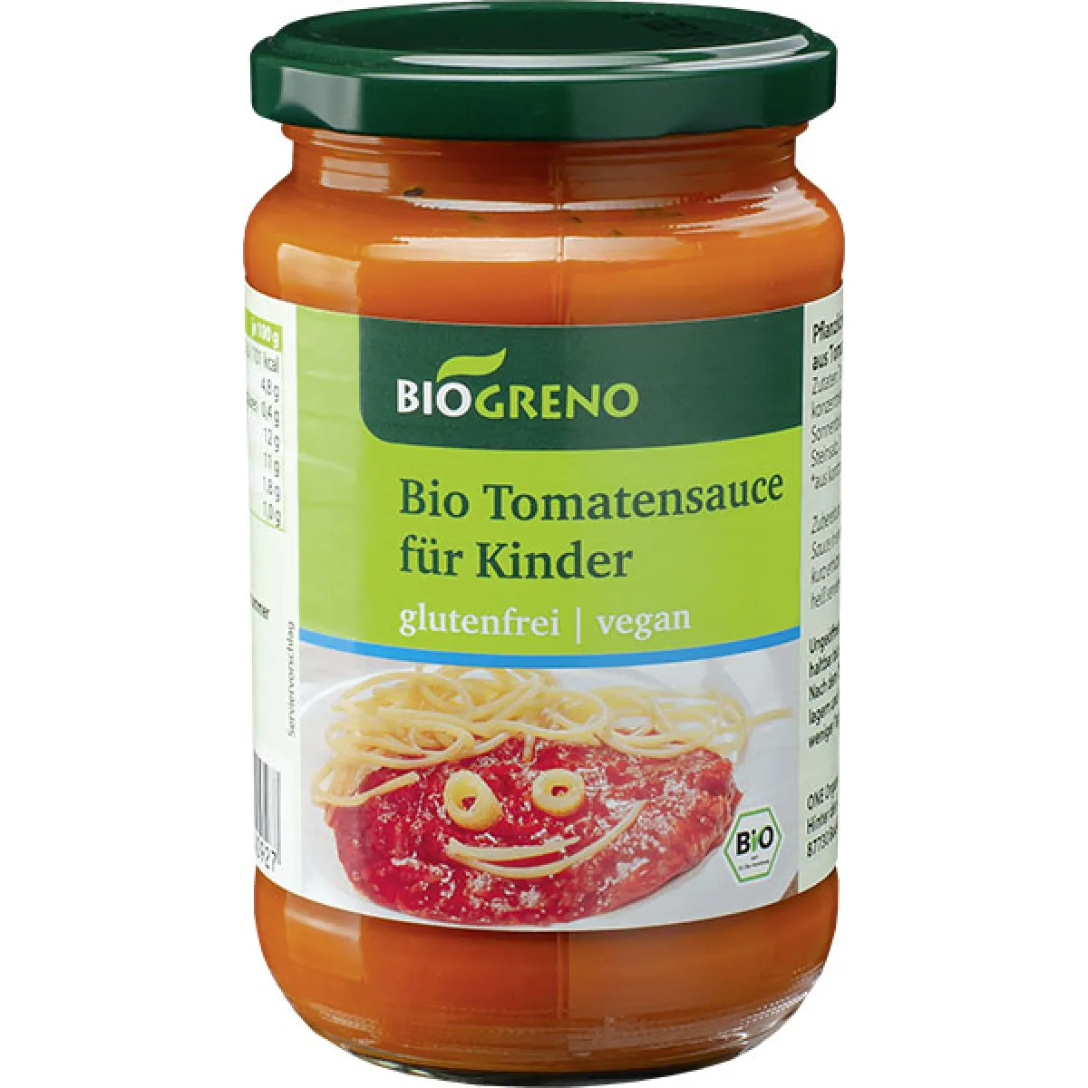 Unsere Biogreno Tomatensauce für Kinder ist eine vegane und glutenfreie Tomatensoße zu Pasta. Fein abgeschmeckt und ohne Konservierungsstoffe zaubert sie jedem Kind ein Lächeln ins Gesicht.