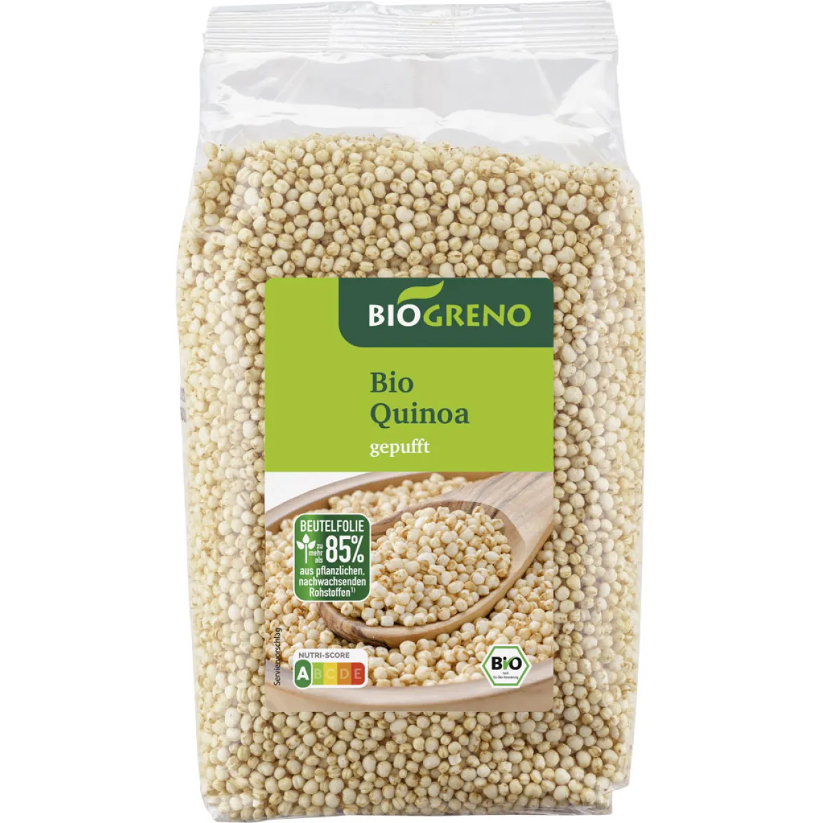 Gepufftes, ungesüßtes Quinoa von Biogreno zeichnet sich durch einen feinen, nussigen Eigengeschmack aus. Quinoa gepufft ist als Zugabe zu Getreideflocken besonders geeignet, passt aber auch als Topping für Müsli & Salat. Die winzig kleinen Körnchen liefern eine Extra-Portion an Proteinen und essentieller Aminosäuren, was sie auch noch gesund macht.